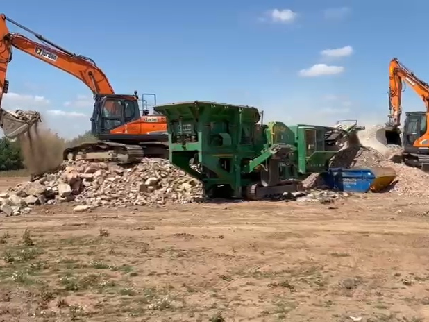 Crushing and screening of brick, concrete, slag and soil with operated crushers and screeners.